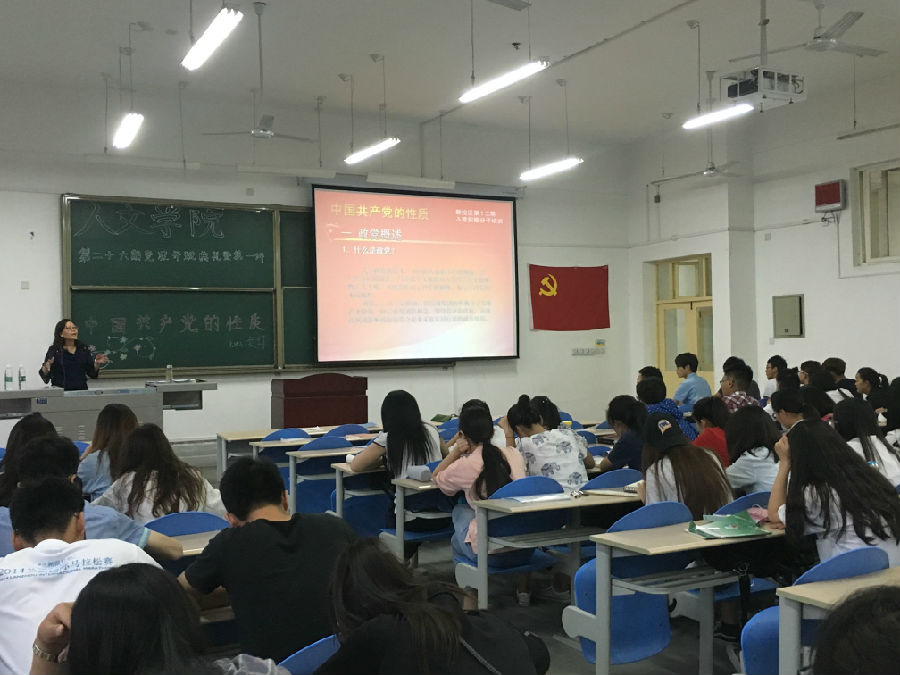 开课仪式结束后,学院党委书记袁玎老师为入党积极分子进行了党课第一讲——中国共产党的性质。袁玎老师详细的讲解了政党的相关概述和中国共产党的性质,并组织在场学员观看了由华南理工大学制作的爱国主义教育短片——《中华的历史》。通过第一讲的学习,同学们大大提升了对党的认识,增强了同学们入党的积极性,在接下来的党课学习中会更加严格要求自己,努力向党组织看齐。