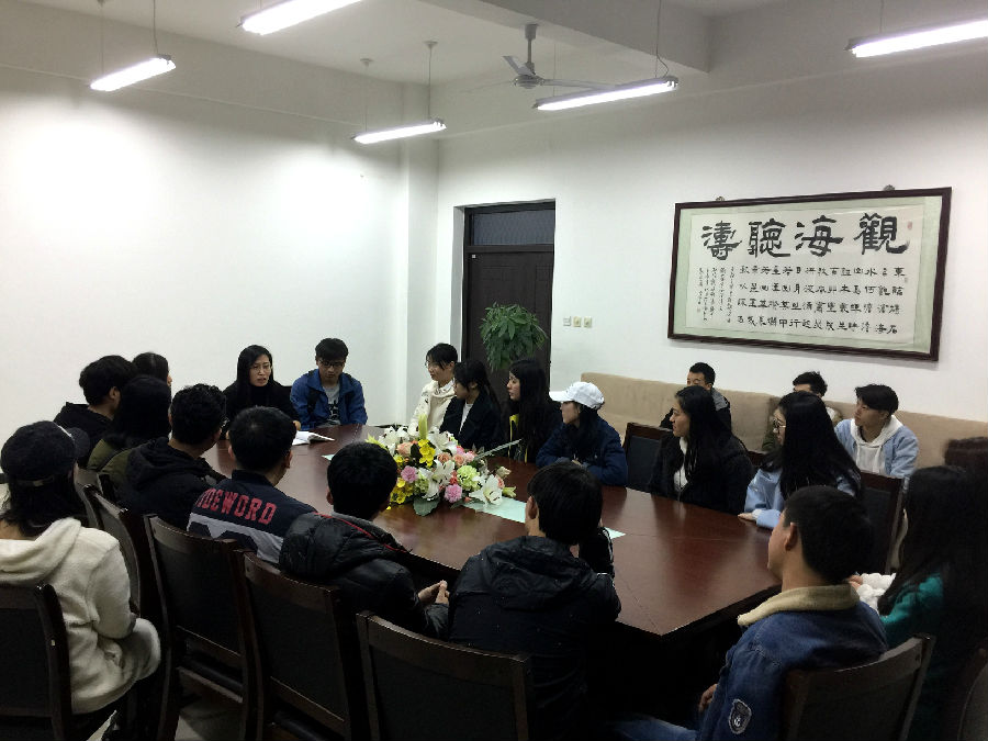 2015级于2月28日晚在院系楼357室召开学生干部会议。会议由2015级辅导员付强主持,年级主要学生干部参加。