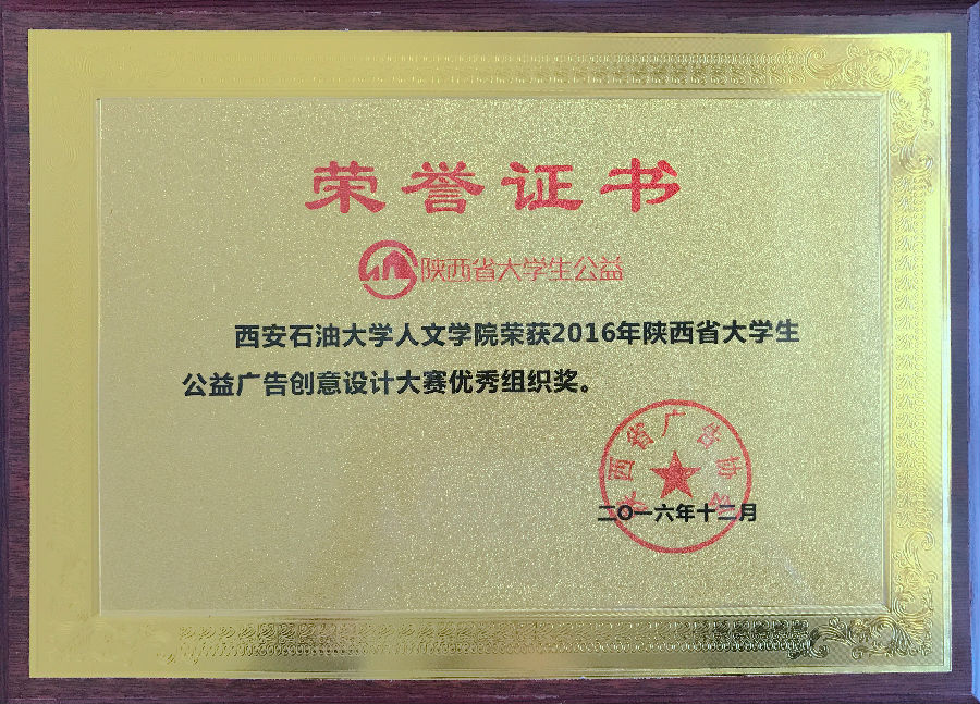 近日,由省工商局、省委高教工委、省文明办、共青团省委联合举办的2016年度陕西省大学生公益广告创意设计大赛公布了获奖结果,我院视传1402班马伟成提交的作品《森林OR沙漠》获得平面类三等奖,周鸣勇被评为优秀指导老师,我院被评为优秀组织单位。