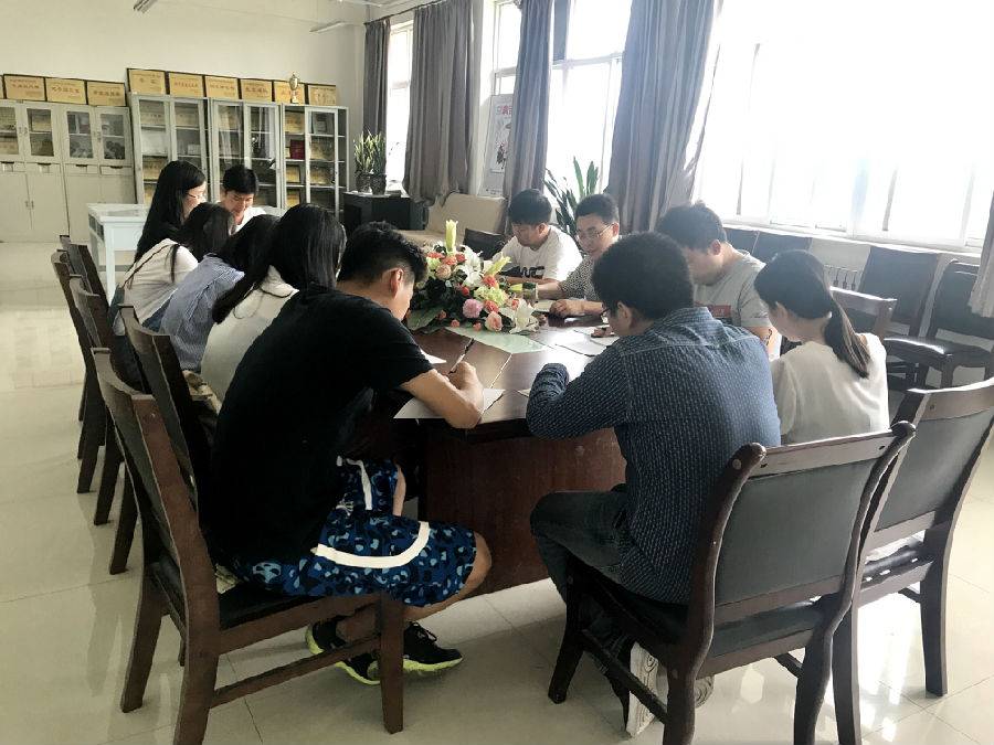 在院系楼357会议室召开学生党建工作部署会议,会议由学院党委副书记李善建主持,各年级辅导员和各学生支部委员参加了本次会议。