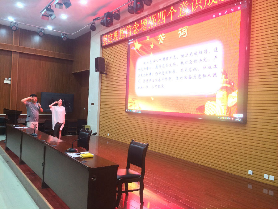 组织全体毕业生党员在鄠邑校区就业指导中心多功能厅举行“坚定理想信念、增强四个意识、成就青春梦想”主题党日教育活动,活动由毕业班辅导员文爱国主持,辅导员张盼及全体毕业生党员参加。