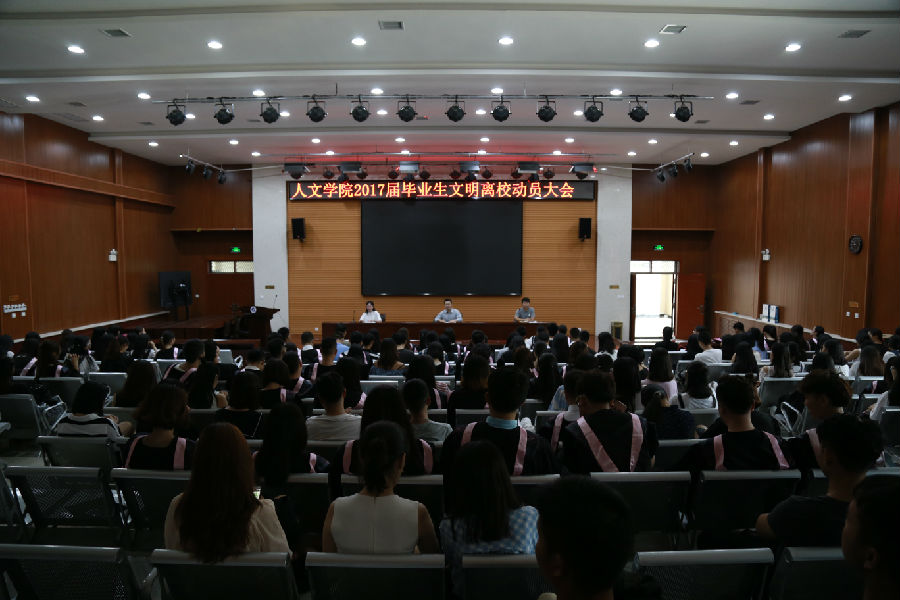 在经管人文楼118召开了2017届毕业生文明离校动员大会暨年级大会。学院党委副书记李善建、毕业生辅导员文爱国老师、张盼老师及全体2013级学生参会。