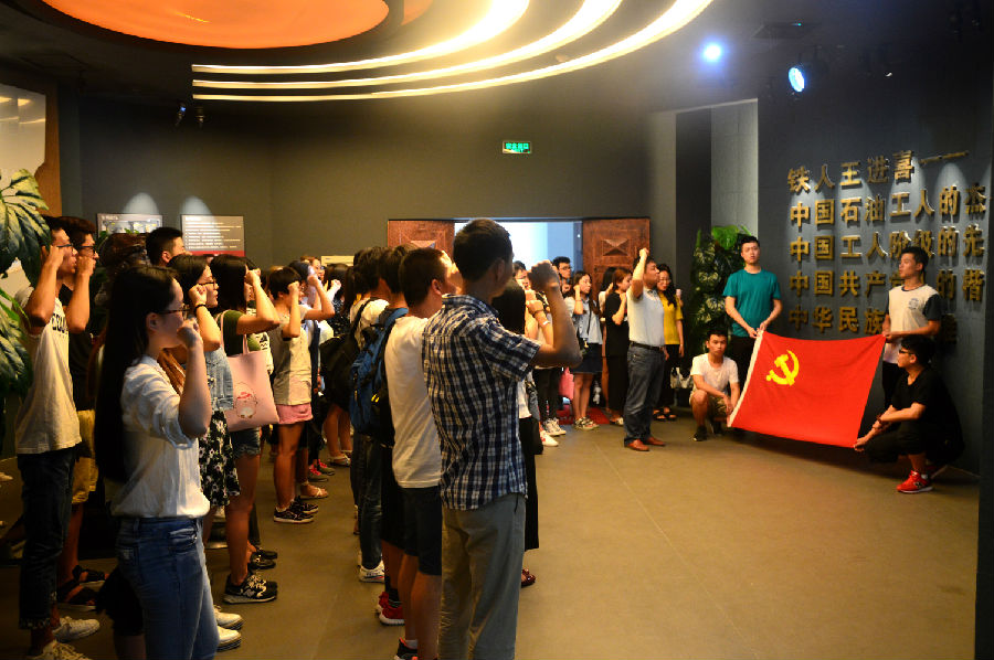 活动开始,支部书记高亮同志带领支部全体党员面对党旗,庄严举起右手,重温了入党誓词。全体党员重温入党誓词之后,表示在今后的学习生活中,时时刻刻用誓言激励自己,牢记使命,不断提高对党的事业的责任感和自觉性,并以实际行动来履行自己的庄严承诺,充分发挥党员的先锋模范作用,以实际行动为党的96周年华诞献礼。在进行宣誓之后,2014级学生党支部全体党员参观铁人纪念馆和校史馆。两馆参观过程中,各位同志仔细聆听了讲解员的讲解,纷纷表示此次的参观活动比入学初参观两馆更有感触,作为学生党员,要在新时期继承和弘扬铁人精神,铭记历史,不忘初心。
