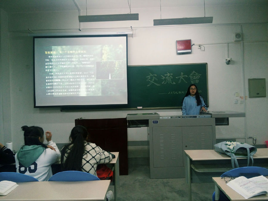 交流会上,每一位助理班主任结合三年来自己优异成绩的取得和良好生活习惯的养成作了真诚地分享。他们分别从政治素养、思想品德、专业学习、课外科技和目标规划等方面谈了自己的见解。吕娟娟学姐作为今年国家奖学金获得者,给同学们分享了她的学习与生活点滴,号召大家争做新时代德、智、体、美全面发展的大学生,志存高远、敢于担当、有所作为、品学兼优,不断学习党的最新理论——习近平新时代中国特色社会主义思想,积极向党组织靠拢,以“四个意识”标准对照自己,不忘初心,不断前进,做新时代坚定的马克思主义信仰者,为民族伟大复兴梦的早日实现贡献力量;刘涵影学姐以自身为例,从决心、信心、平常心和用心四个心态诠释了自己的大学生活,她告诉同学们自主学习非常重要,学习既要保证时间又要有规划,保质保量完成既定计划,复习时要分科进行,权衡轻重,定期自我总结,温故而知新,才有助于提高学习效率;牛瑜学姐通过PPT的形式,向同学们讲解了她的学习成长故事。以学习为中心,分别从大学生活、课外实践、兴趣爱好培养等方面展开陈述,告诉大家大学学习要以四年时间作为轴线,学习大学英语、计算机、专业课以及选修课要讲究方式方法,确保事半功倍,并不断树立“终身学习”的思想,广泛涉猎启迪智慧和笃实修身的书籍,明辨修德,完善自我。