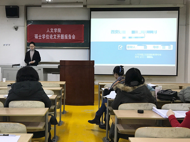 于12月7日开展了2017级汉语国际教育专业硕士论文开题论证答辩工作。25名2017级研究生分为两组分别在本部二号教学楼1007、1011教室进行了汇报,10名硕导及2名答辩秘书参与了答辩论证工作,2018级全体研究生旁听了本次答辩会。