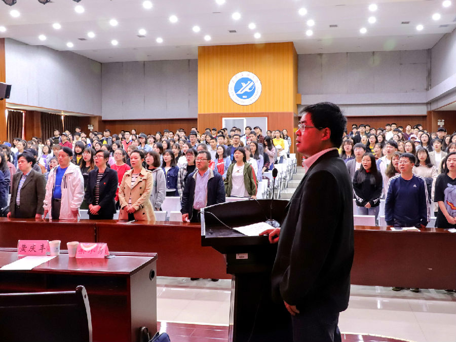 最后,伴随着熟悉的旋律,在场人员全体起立,合唱由陈忠实先生作词的校歌《辉煌明天》。正如歌词中所唱:“青春无愧,指点江山,看我同学少年”。先生虽去,精神永存,石油学子定当不负先生所望,成就一片辉煌明天。