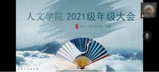 2021级学生通过腾讯会议参加年级大会,本次会议由2021级辅导员张馨元主持并召开。