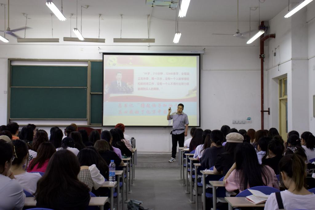 余小勇书记首先介绍了本次思政课的目的、意义和党的十九大主要内容。余书记指出,党的十九大主题是现在和今后一个时期我们党全部工作的总要求,回答了我们在新时代举什么旗、走什么路、以什么样的精神状态、肩负什么样的历史使命、实现什么样的奋斗目标等一系列重大问题。他强调“为人民谋幸福”就是“为人民服务”的新说法,每个共产党员都有自己的“初心”和“使命”,承诺做到永不背叛、永不辜负、永不失信是党员干部的内在要求。余书记鼓励学生响应习近平总书记对青年人的号召,端正价值观、追求梦想,为创造属于自己的未来和奇迹努力奋斗。