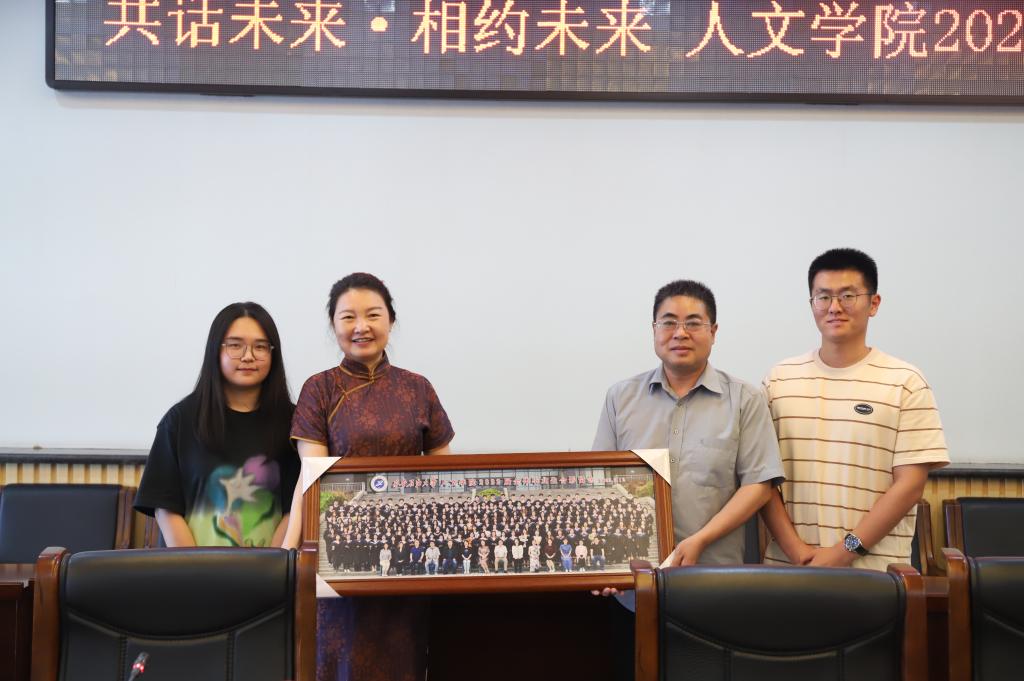毕业生献上了他们对于学院的一片心意--2022届全体本科毕业生合影;学院也为每位毕业生准备了一份小礼物祝福大家前程似锦。