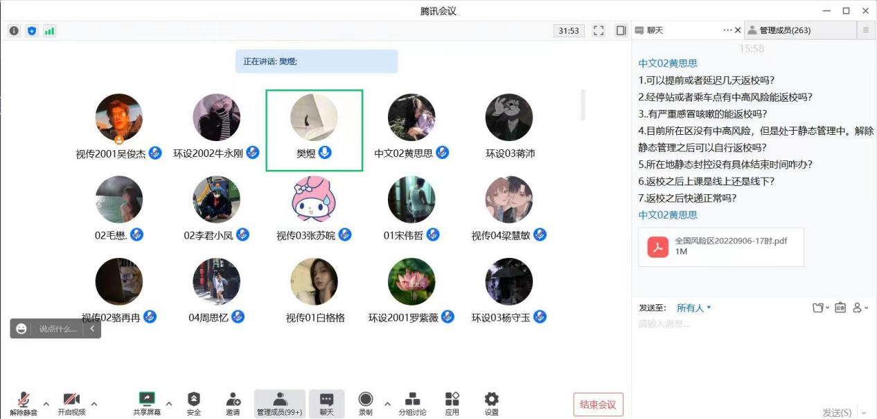 学生工作办公室迅速行动、整理返校安排要点、完善各年级年级大会提纲后,于9月7日内召开线上各年级大会,向全体学生公布返校相关事宜。