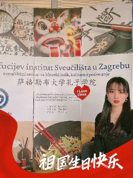 赴克罗地亚萨格勒布大学孔子学院志愿者20级研究生韩辉敏同学(下图)祝福祖国:回国一月有余,点赞中国速度;于红旗下成长,在盛世里眺望;巍巍山河永昌,祖国繁荣富强。