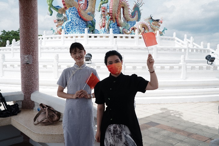 赴泰国蓬思里学校任教的汉语教师志愿者21级研究生陈悦、郭佳敏(下图)同学遥祝伟大祖国:中国母亲73周年生日快乐,美丽富饶,风调雨顺,山河无恙,国泰民安。