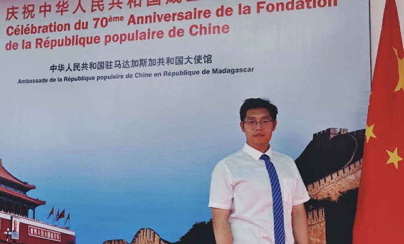 2018级研究生武奇作为汉语教师志愿者负责该活动的全程拍摄工作。武奇同学(下图)从马达加斯加遥祝新中国73周岁生日快乐,中马建交50周年,中马友谊长存。