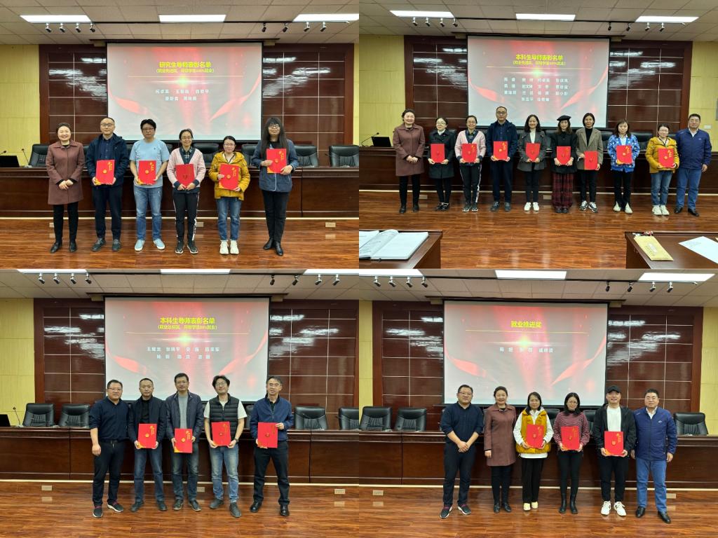 关于表彰2022届毕业生就业工作先进个人的决定》,余小勇、李涛、方松林为获奖教师颁发荣誉证书。随后,盛丹就2023届毕业生基本情况、就业进度、考研报名及初试情况汇报了2023届毕业生就业工作进展。她指出,目前2023届毕业生就业形势依然十分严峻,不容乐观。她向全体教职工汇报了已开展工作、目前面临的难点和下一步计划,强调毕业生就业工作需要全院教师共同参与,形成合力,要千方百计教育毕业生树立正确就业观、择业观,想方设法推进学生想就业、能就业、快就业。