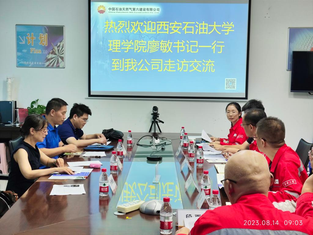 毕业班辅导员李峤等一行三人前往中国石油天然气集团公司第六建设有限公司西北分公司(以下简称西北分公司)走访交流。双方就加强校企合作、关注校友成长等进行了座谈交流。