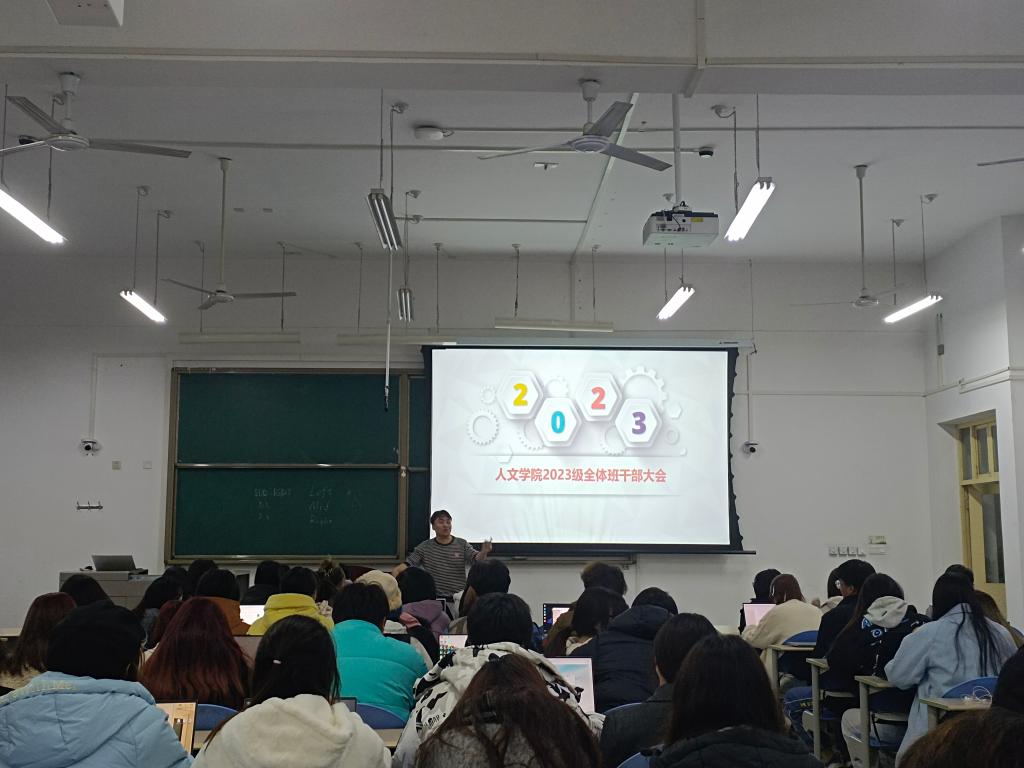 于11月15日晚在鄠邑校区B117教室召开2023级全体学生干部大会,2023级辅导员王凯杰、全体学生干部及辅导员助理参加会议。