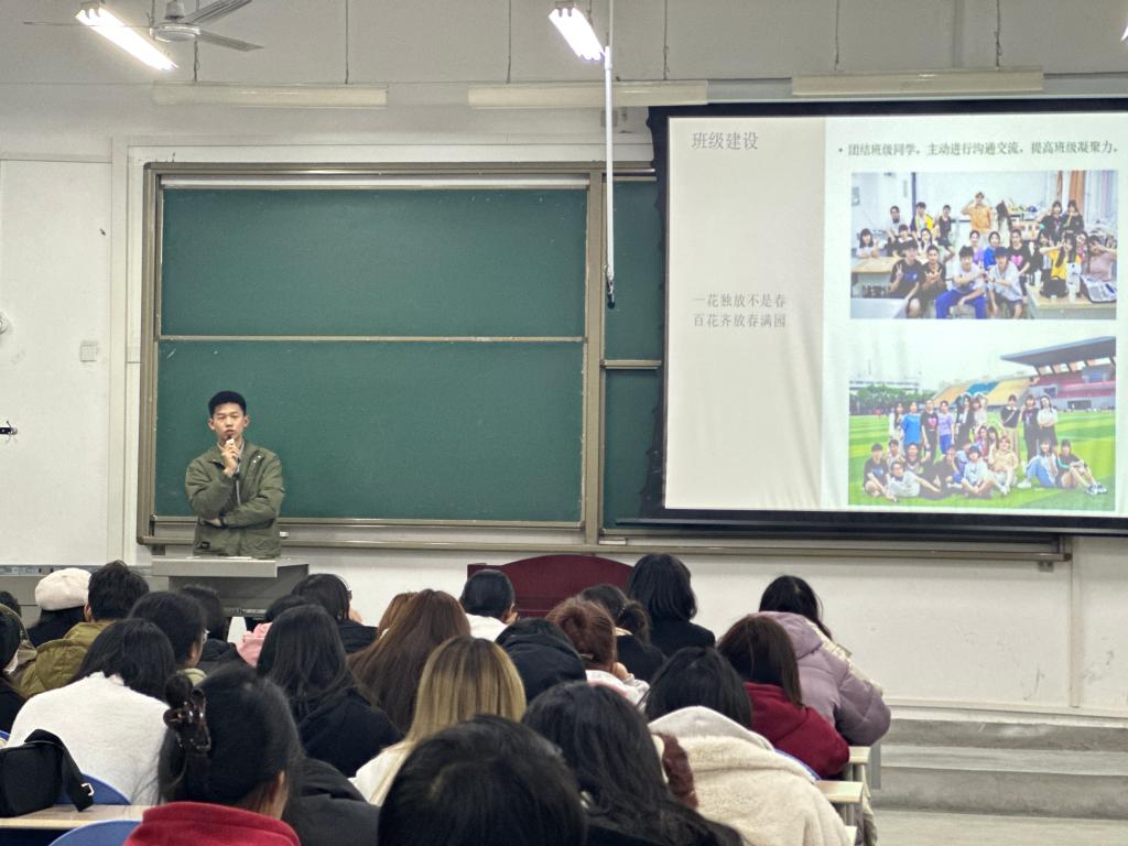 20届团委副书记吴俊杰线下主讲,2022级、2023级班干部及辅导员助理通过线上线下相结合形式参加,2023级辅导员王凯杰主持。