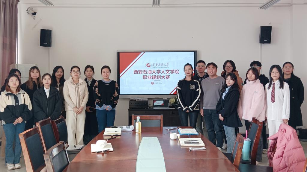 于鄠邑校区崇文楼357会议室举办首届“逐梦青春、职击未来”大学生职业规划大赛现场答辩环节。
