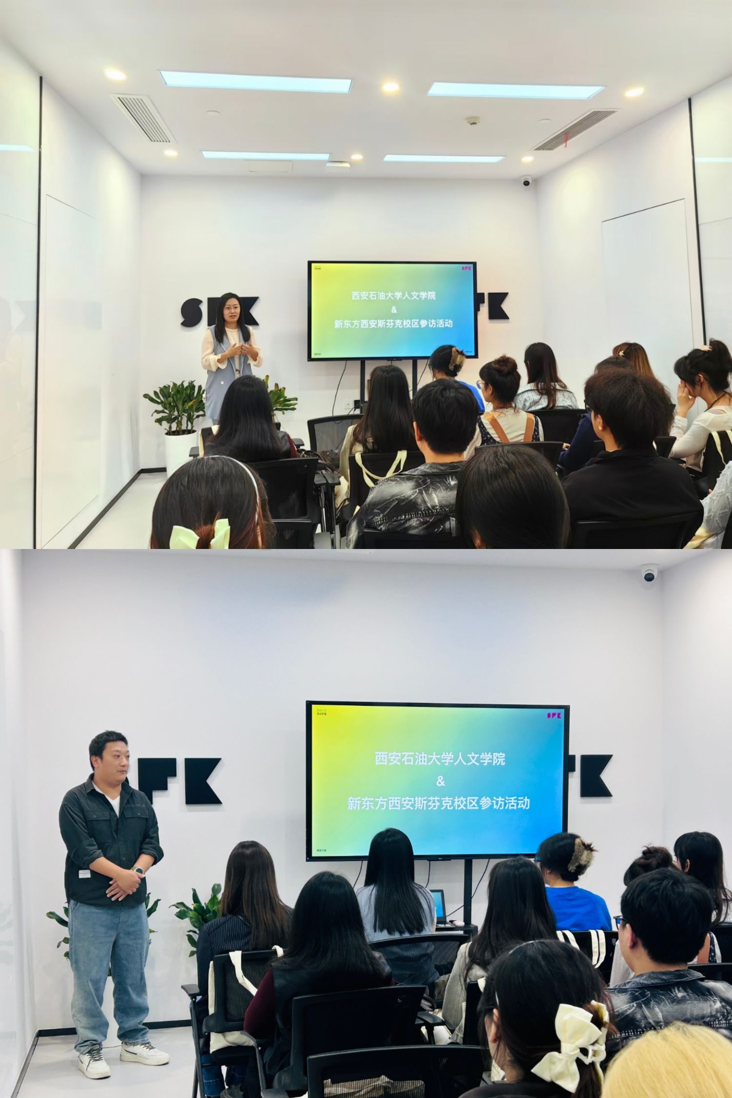 组织部分设计类专业学生前往新东方斯芬克艺术留学作品集西安校区的参访学习,学院学工办主任付强、2022级辅导员范嘉欣带队参观。