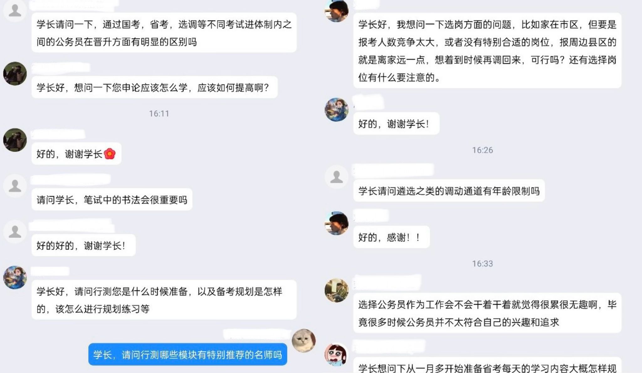 答疑环节,同学们积极提问。针对“如何结合自身情况选岗”的问题,主讲人建议综合考虑未来发展意愿、岗位所在地、单位性质及职务等级等因素。谈及笔面具体的备考经验,他详细讲述亲身经历,分享各考试模块经验。