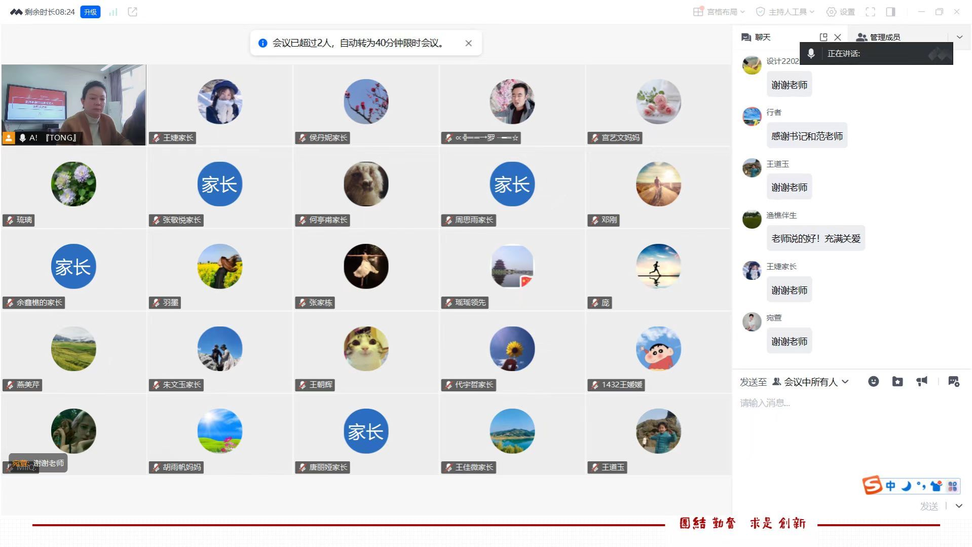 学生考试违纪处理规定》等校纪校规进行了讲解,希望从学校和家庭双线教育学生遵守校纪校规。随后,辅导员针对本年级的学业水平和英语四级学习情况进行了数据分析和原因梳理,分享了近年来学院学生工作遇到的因英语水平欠佳而影响毕业、就业和研究生录取的经典案例,介绍了学校学院在帮助学生提高英语水平上提出的英语能力提升班、英语学习打卡、四级模拟考试等具体做法和有效措施,指出各专业成绩的不足,希望引起家长的重视。