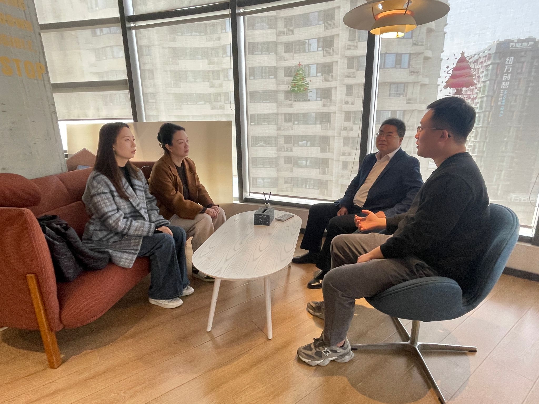 仪式结束后,余小勇一行人参观了AF国际艺术中心的教学区、作品展示厅及办公环境,深入了解企业运营模式与实习场景。盛丹与企业代表围绕学生留学申请中的常见问题展开讨论,计划未来将联合协作,一同优化实习指导方案,为学生提供“一站式”留学与就业服务。