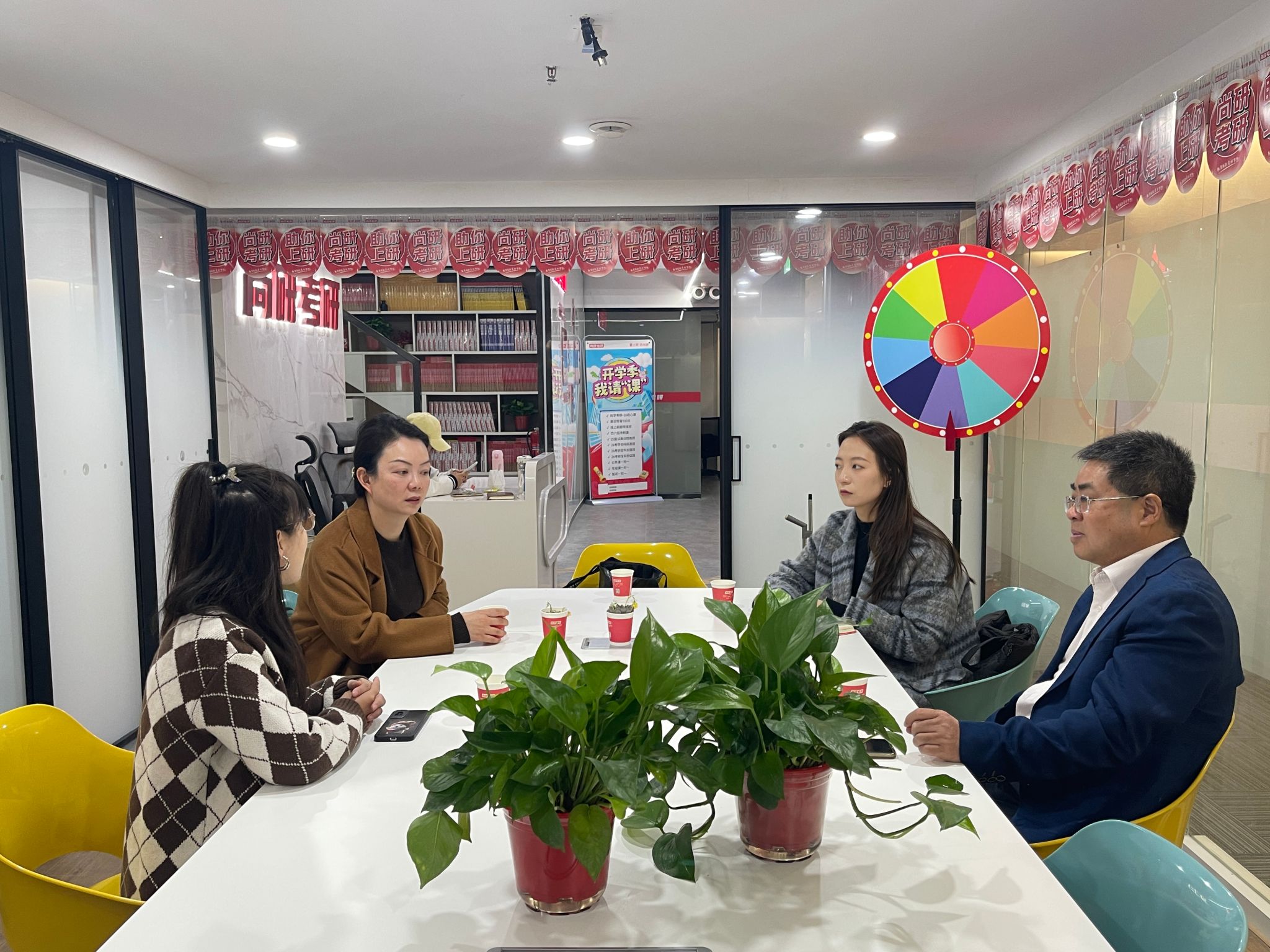党委书记余小勇、党委副书记盛丹、学工办主任范嘉欣、毕业班辅导员张馨元一行赴高顿教育、尚研考研开展访企拓岗与合作洽谈活动。