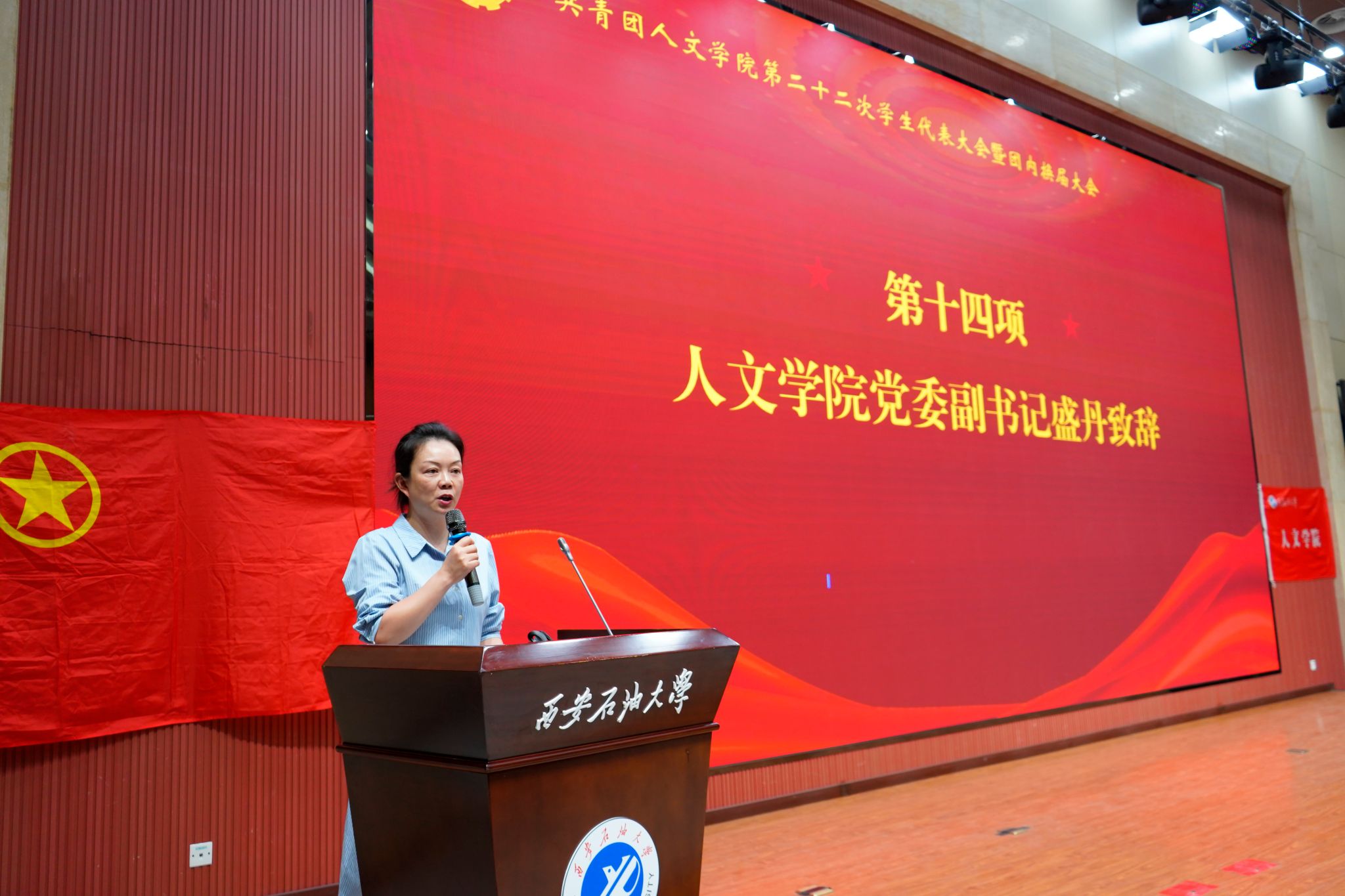 盛丹作总结讲话,她提到面向实现第二个百年奋斗目标的伟大召唤,团员青年要牢记领袖嘱托、不忘初心使命,进一步深化改革和建设,踔厉奋发、勇毅前行,真正承担起为党培养堪当民族复兴重任的时代新人的使命责任,希望各位代表和全院学生们同心同德、共同努力,使我院团学工作更上一层楼。