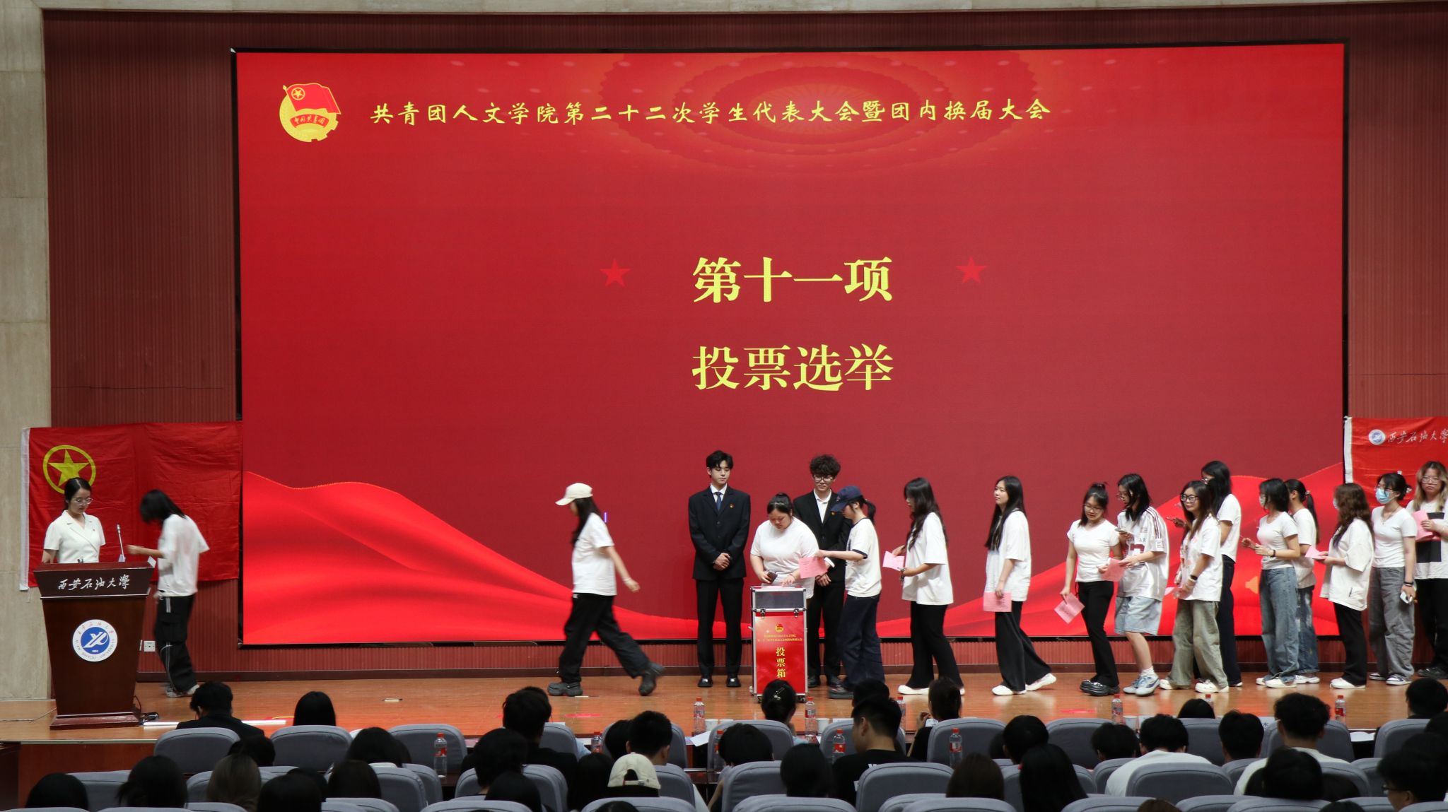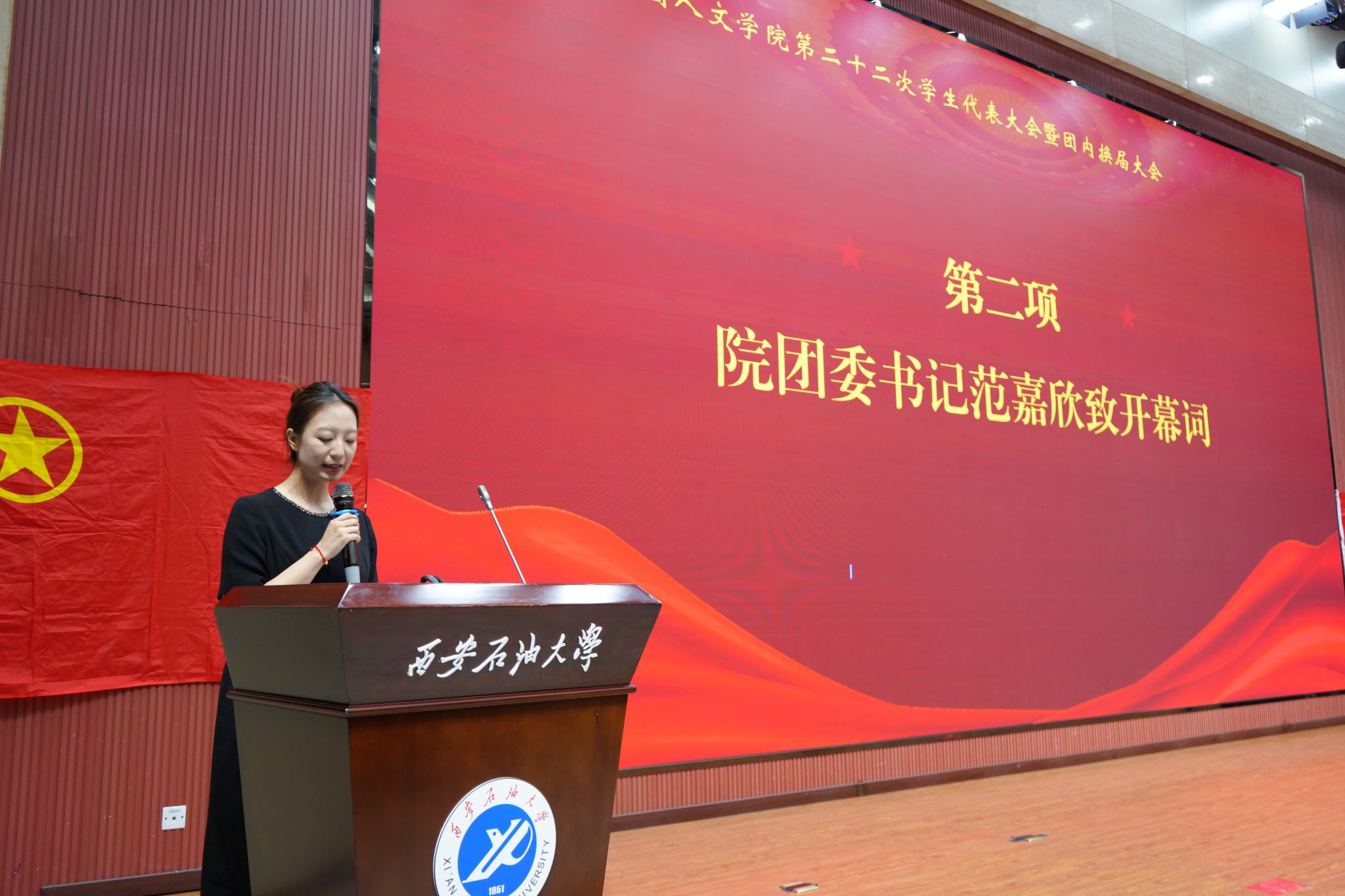 委员会关于各部门主要学生干部任职的通知》,大会听取并审议通过了《提案工作报告》和《学生会工作总结报告》和《大会选举办法》,根据选举结果,李又茂、李润、李志荧、葛佳乐当选为第二十二届学生会委员。范嘉欣带领全体成员宣誓,承诺服从党的号召、为学院发展贡献力量。
