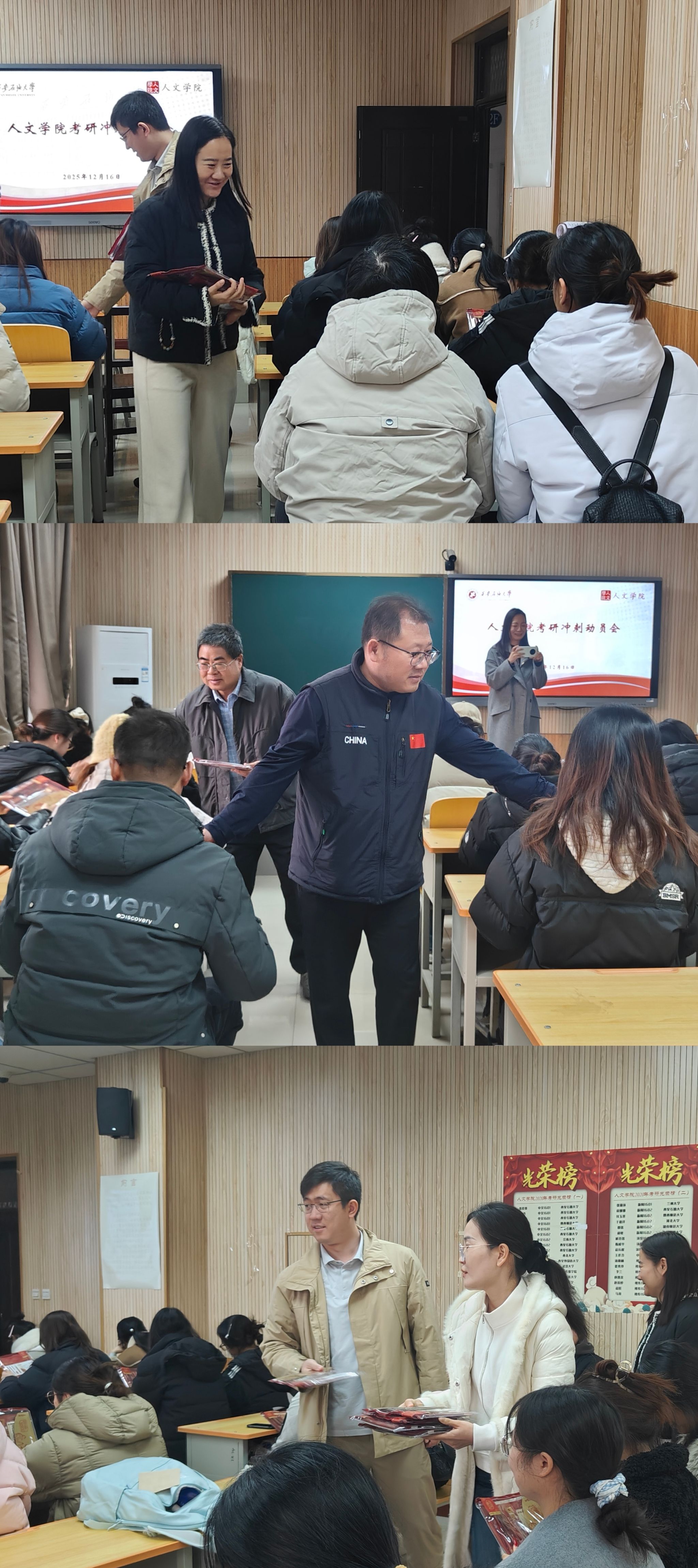 在鄠邑校区崇文楼233教室举办考研冲刺动员暨慰问活动。学院党委书记余小勇、院长方亭、党委副书记郭媛、副院长方松林、兰昆出席活动,向考研学子送上诚挚关怀与殷切寄语。