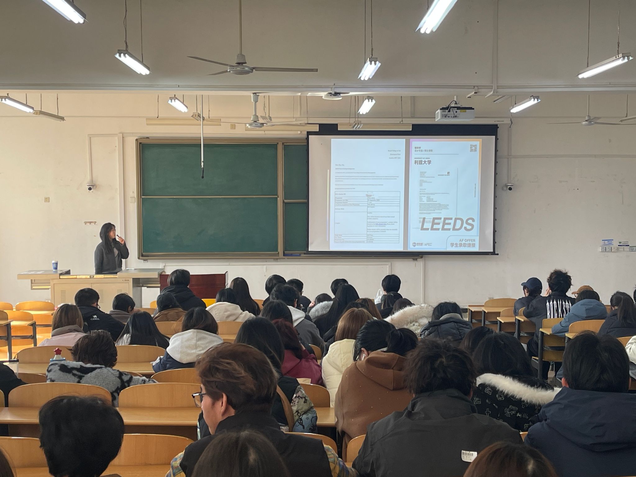 于博思楼B123教室举办设计类职业规划系列讲座之留学篇。本次讲座以“拿下利兹大学艺术硕士,我做对了这几件事”为主题,特邀现已成功获得利兹大学与皇家艺术学院硕士录取的视觉传达专业2022级学生穆子钰担任主讲,吸引了设计类专业学生的积极参与。