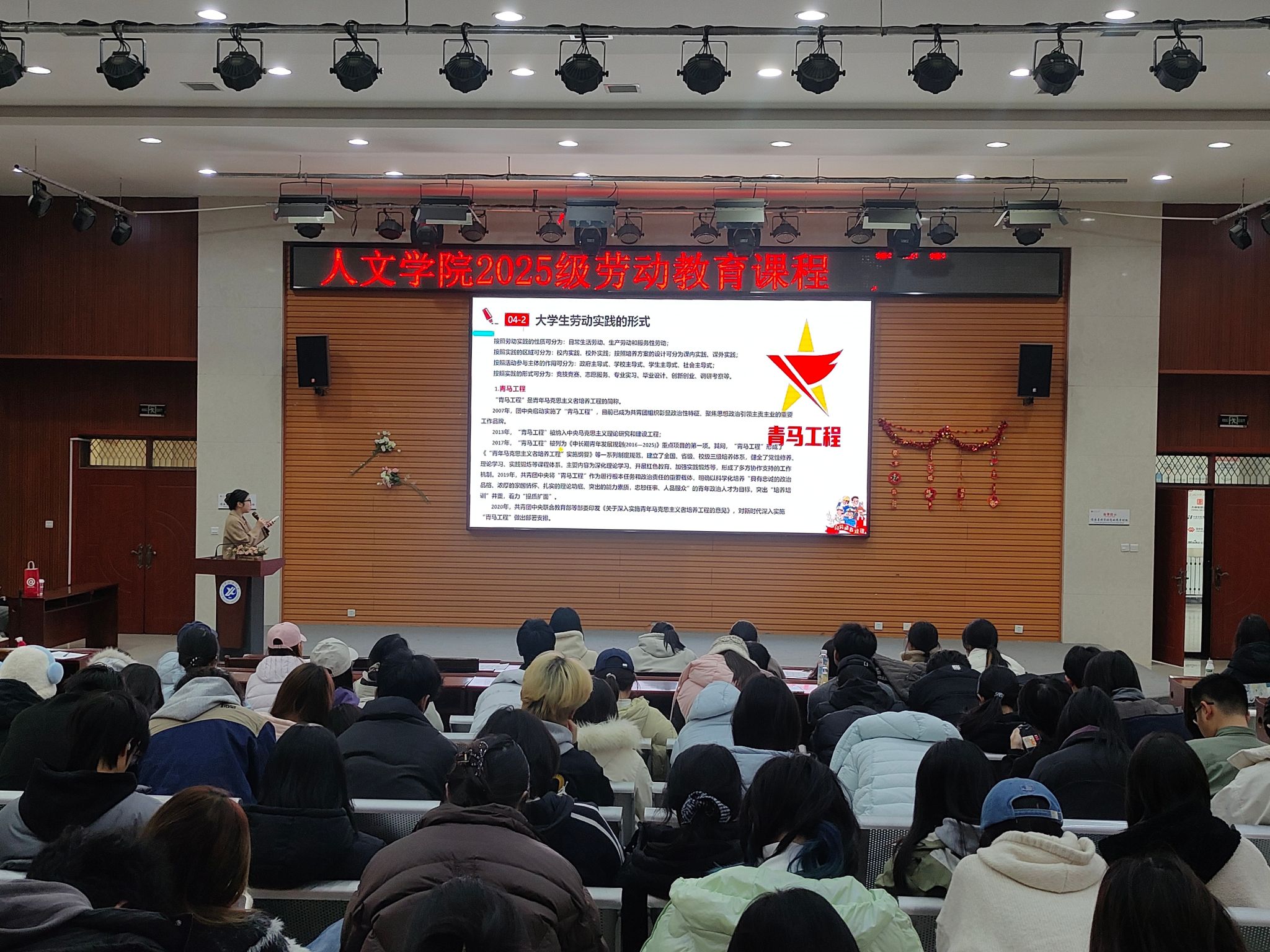 本科生第二课堂学分管理办法》,从劳动与劳动教育的基本内涵、劳动铸就的历史成就、新时代劳动精神的核心要义以及大学生劳动实践的重要意义四个方面,深入阐述了劳动教育的时代价值。张馨元通过生动案例引导学生理解劳动对于个人成长和社会发展的重要性,鼓励同学们在实践中学真知、悟真谛,努力成为全面发展的时代新人。