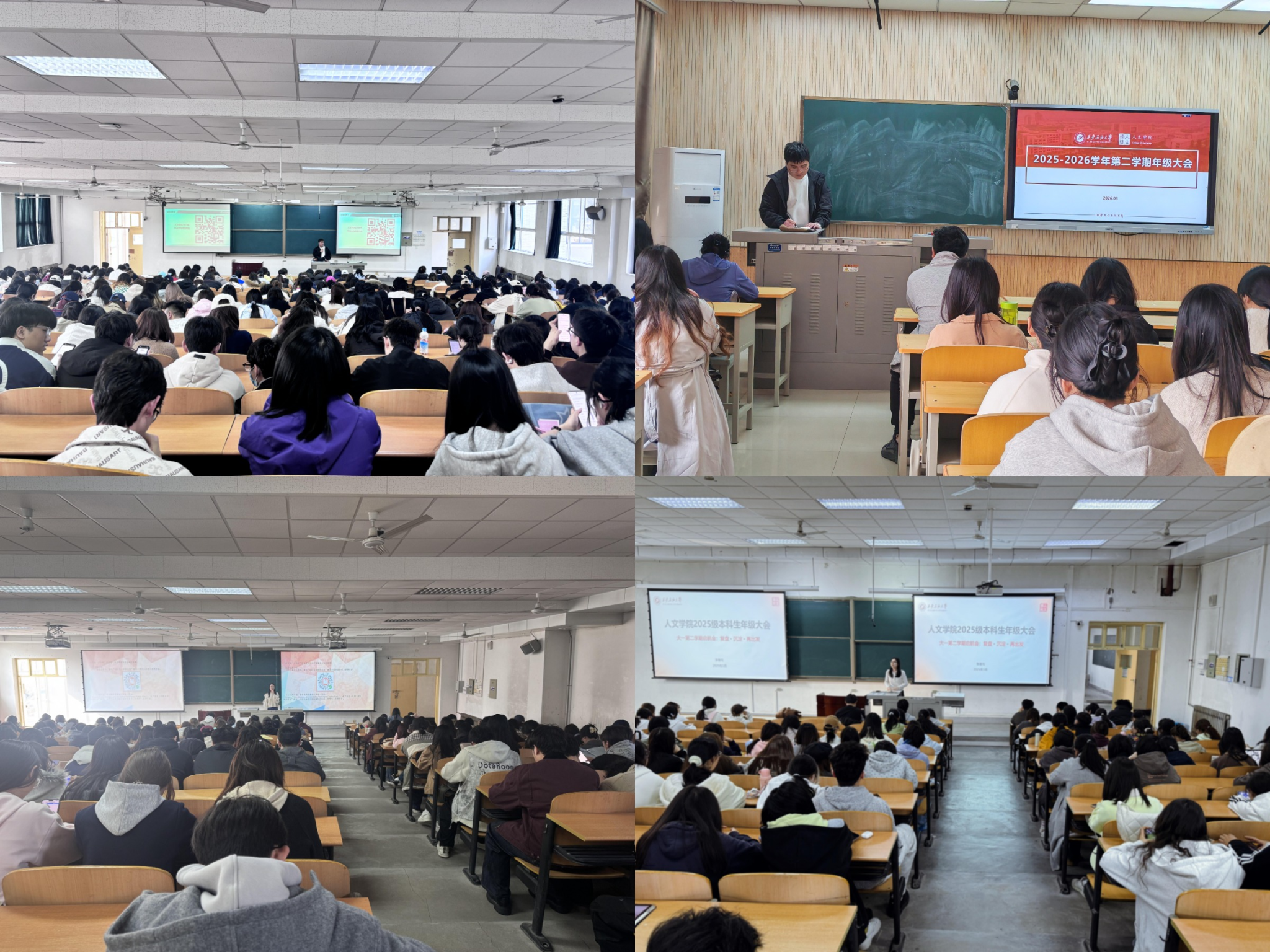各年级在鄠邑校区博览楼A134、A139、A239及崇文楼233召开2026年春季学期第一次年级大会。会议由各年级辅导员主持,全体学生参会。