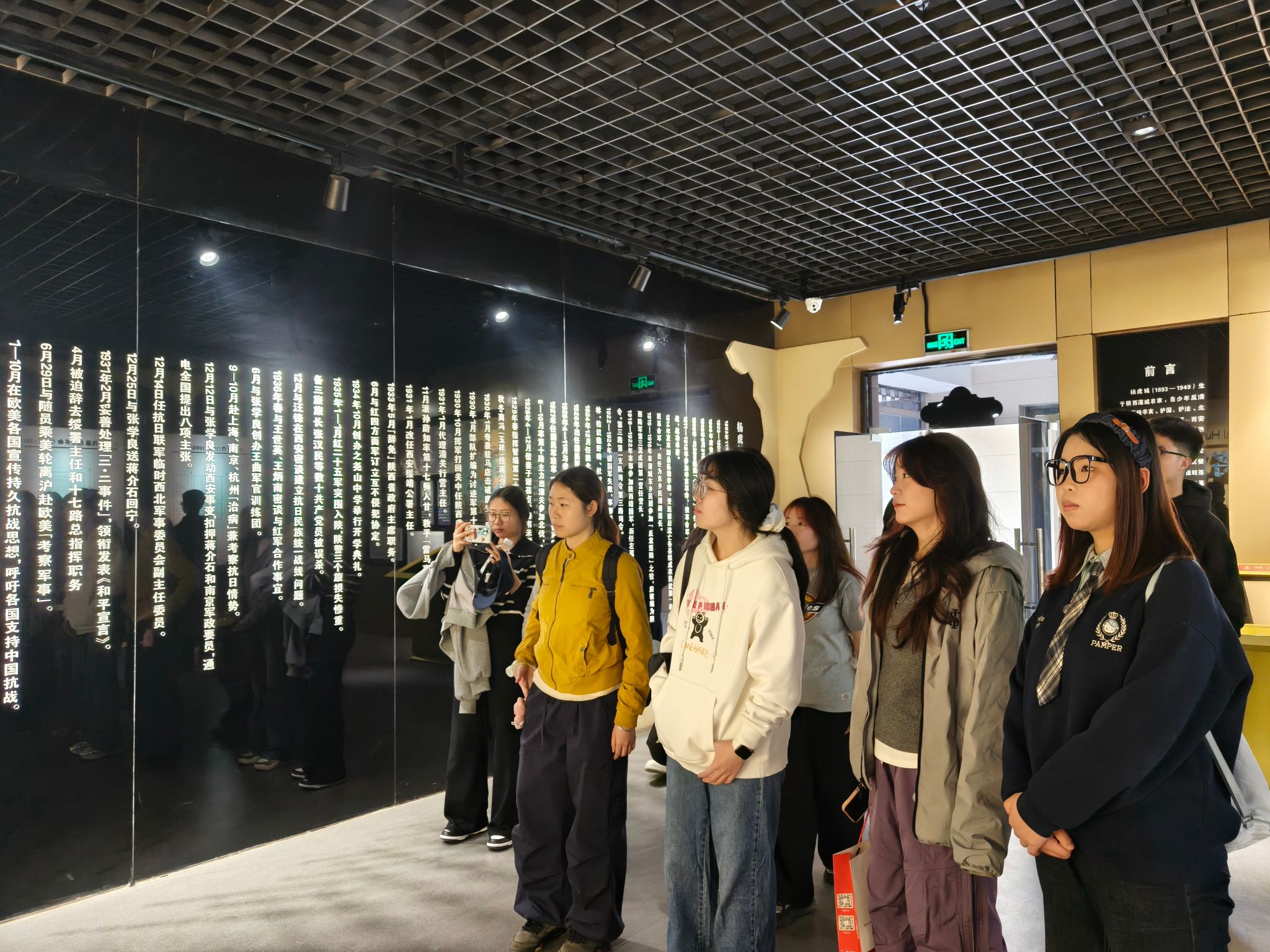 随后,全体师生共同观看杨虎城将军事迹纪录片,参观杨虎城将军纪念馆,围绕“北伐和二虎守长安”“主政陕西造福三秦”“西安事变千古功臣”“铁汉柔情家庭和美”“治军严明英雄辈出”“民族英雄永垂不朽”“隆重祭奠后人敬仰”等七大主题进行研学。通过一幅幅历史照片和一件件珍贵文物,全面回顾杨虎城将军为民族解放、国家独立不懈奋斗的光辉一生,深刻感悟其在西安事变中力促抗日民族统一战线形成的家国担当,传承弘扬他以生命践行的爱国情怀与民族气节。