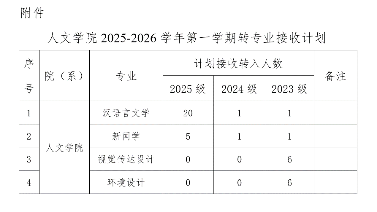 学院根据各专业设置情况,在考虑师资力量、教学资源等承载力的基础上,明确每学期接收转入学生的计划指标,接收专业和计划见附件。