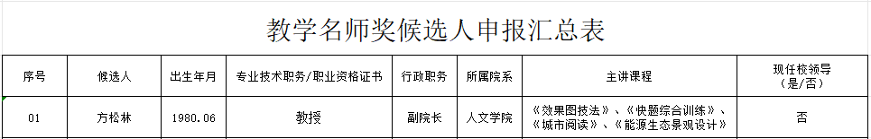 根据学校《关于开展第十届校级教学名师奖评选工作的通知》及《腐漫画 教学名师奖评选办法》等通知办法的相关要求,经本人申请、学院学术分委员会审议,现将腐漫画 第十届校级教学名师奖推荐人选公示如下: