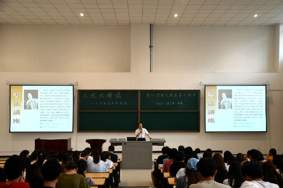 副院长张海涛副教授主持,我院王新建教授、书画文化研究中心执行主任卢强老师出席讲座,我院中文、新闻、设计专业以及其他院系学生300余人听取了讲座。