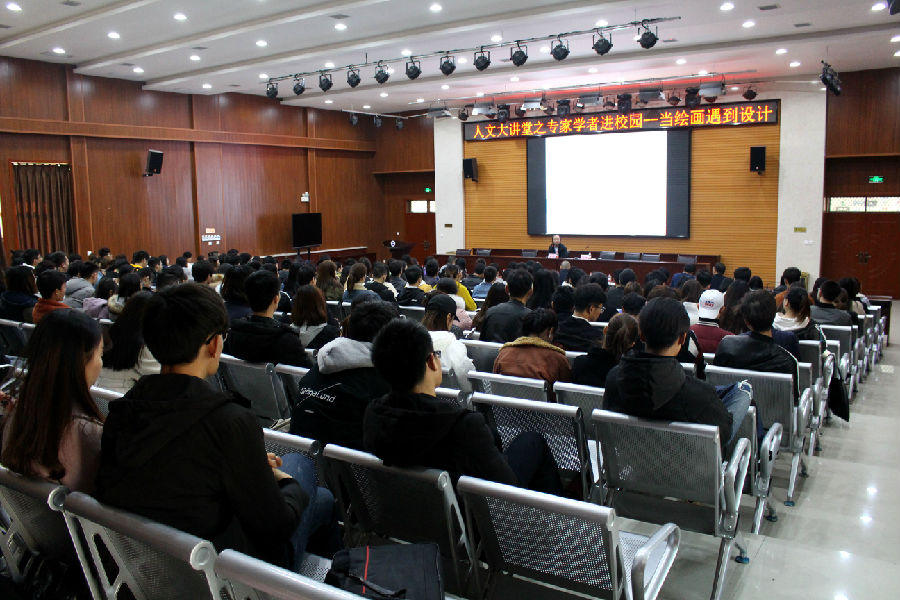 周教授结合自己的成长经历和工作实践,围绕艺术作品的创作和传播方面,以及绘画与设计之间相辅相成的关系展开了一场内容丰富的讲座。周教授认为,绘画作品的创作流程需要实地考察与观察、现场写生、作品创作、出产艺术作品四个阶段,要出好作品就要做根性研究,而设计师设计作品的创作流程也分为四个阶段,即体验观察生活、设计构思与草图、设计图纸、出产艺术作品,两者之间相辅相成、共同促进。周教授针对艺术家和设计师在完成作品时可能遇到的问题做了一一对比,并提出这样的观点:想要设计具有创新,必须要使绘画与设计强强联合。接下来,周刚教授对艺术性人才培养提到了以下三点看法:1、为主动迎接文化创意产业的爆发式进程,学科应建立 “综合型设计人才培养模式建构”;2、通过“通才”教育的途径,运用课题式教育手段,达到培养“通才”与“复合式”人才的目的,从而满足社会经济发展的需要;3、设计类学生在学习中应注意从其他学科中汲取灵感,提升个人的文化修养与素质,促进自身的全面发展。最后,周教授鼓励大家培养跨界思维,在设计学习中不断回头加强绘画功底,两者有机联合,让设计更具创新性和突破性。